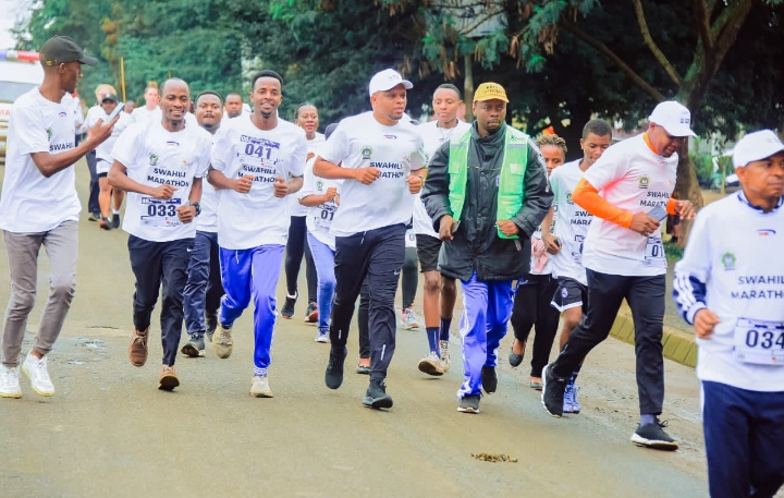 Akizungumza baada ya kushiriki na kuongoza mbio za km 5, Mhe. Mwinjuma amesema mbio hizo zina lengo la kuleta ari na mwamko kwa Watanzania, Afrika na Duniani kote ili kuyapa hadhi maadhimisho ya siku ya Kiswahili Duniani.