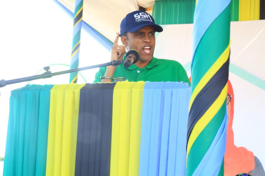 Waziri wa Kilimo, Hussein Bashe,akizindua mfumo wa MUVU wakati wa kilele cha Maadhimisho ya Siku ya Ushirika Dunia,yaliyofanyika Julai Mosi,2023 Mkoani Tabora.