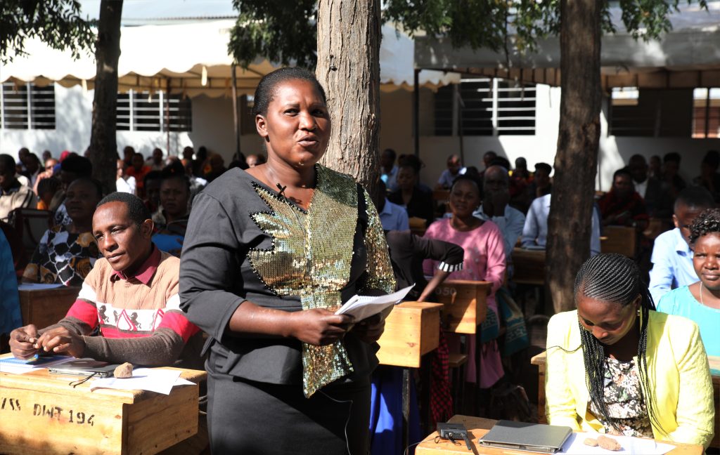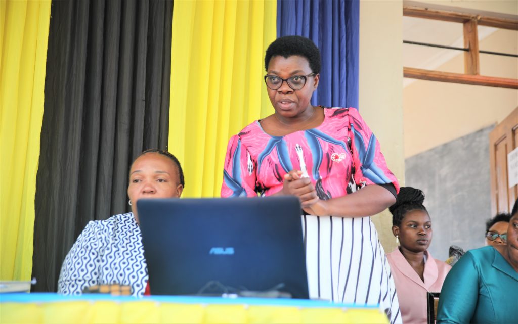 Mwalimu Mary Mapembe akieleza faida ya mafunzo waliyopatiwa na Ofisi ya Rais-TAMISEMI kwa kushirikiana na Wizara ya Elimu, kabla ya Dkt. Msonde kufunga rasmi mafunzo hayo.