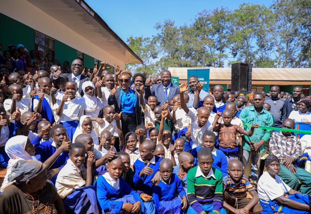 Makamu wa Rais wa Jamhuri ya Muungano wa Tanzania Mheshimiwa Dkt. Philip Mpango akiagana na wanafunzi wa Shule ya Msingi Muyama mara baada ya hafla ya kupokea Madarasa, Samani mbalimbali na Ofisi za Walimu yaliokarabatiwa na Benki ya Biashara Tanzania (TCB) katika Shule ya Msingi Muyama iliopo Wilaya ya Buhigwe mkoani Kigoma.