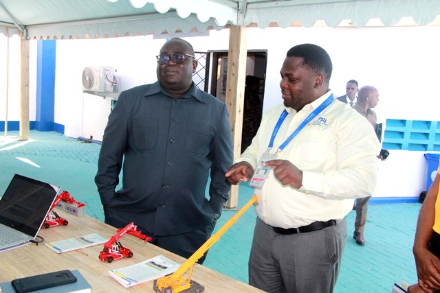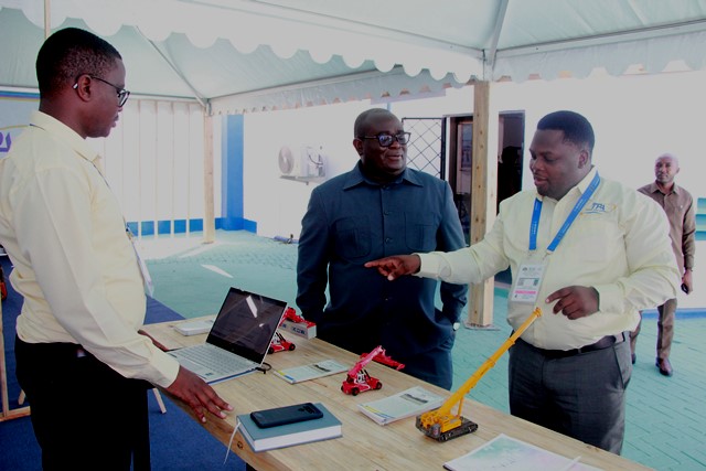 Naibu Waziri wa Wiara ya Ujenzi Mhandisi Godfery Kasekenywa akipata maelezo kutoka kwa wafanyakazi waMamlaka hiyo wakati alipotembelea banda la Mamlaka hiyo katika Maonesho ya 47 ya Biashara ya Kimataifa yanayoendelea kwenye viwanja vya Sabasaba jijiniDar es Salaam.