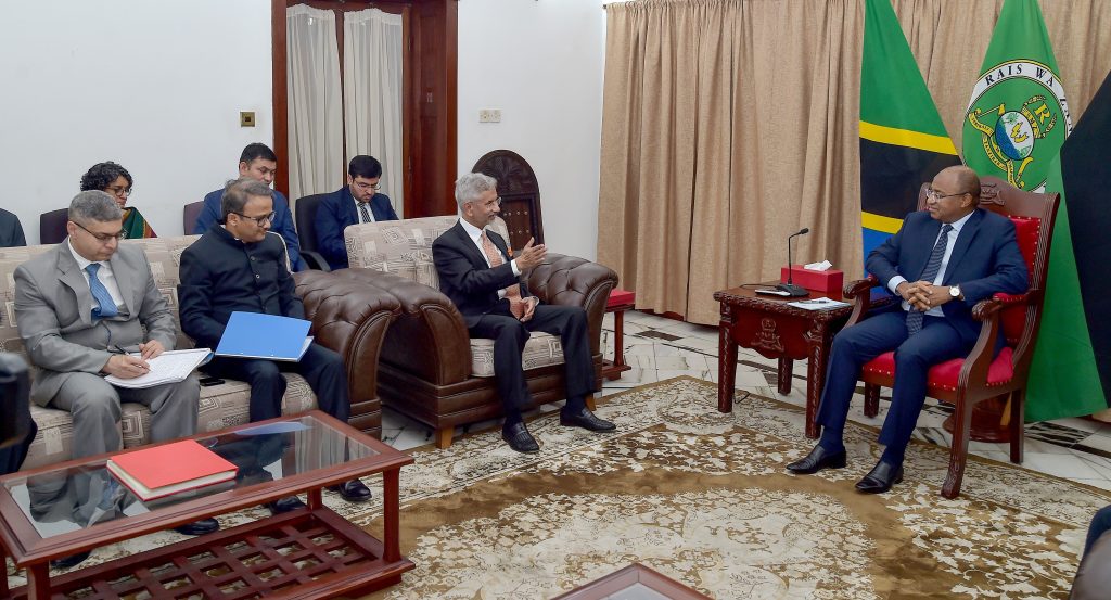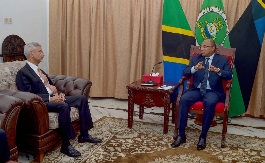 RAIS wa Zanzibar na Mwenyekiti wa Baraza la Mapinduzi Mhe.Dk.Hussein Ali Mwinyi akiwa katika mazungumzo na mgeni wake Waziri wa Mambo ya Nje wa India Mhe. Subrahamanyam Jaishankar akiwa na ujumbe wake, mazungumzo hayo yaliyofanyika katika ukumbi wa Ikulu Jijini Zanzibar,5-7-2023. (kulia kwake) Balozi wa India Nchini Tanzania Mhe.Banaya Srikanta Pradhan.