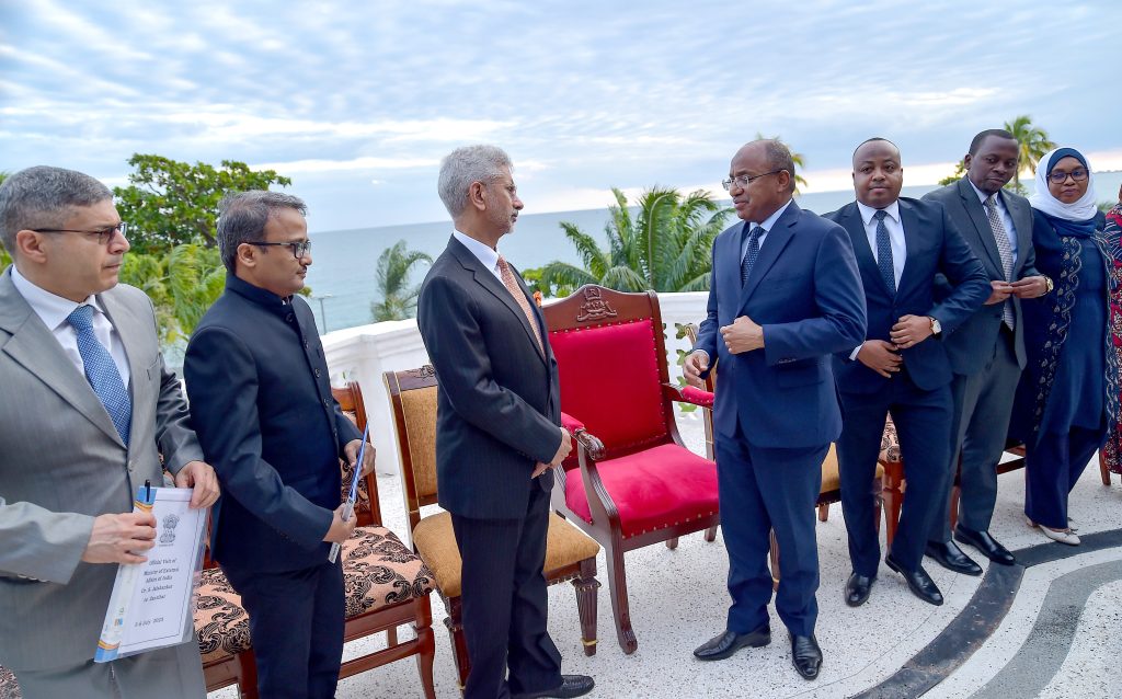 RAIS wa Zanzibar na Mwenyekiti wa Baraza la Mapinduzi Mhe.Dk.Hussein Ali Mwinyi akiwa katika mazungumzo na mgeni wake Waziri wa Mambo ya Nje wa India Mhe. Subrahamanyam Jaishankar akiwa na ujumbe wake, mazungumzo hayo yaliyofanyika katika ukumbi wa Ikulu Jijini Zanzibar,5-7-2023. (kulia kwake) Balozi wa India Nchini Tanzania Mhe.Banaya Srikanta Pradhan.