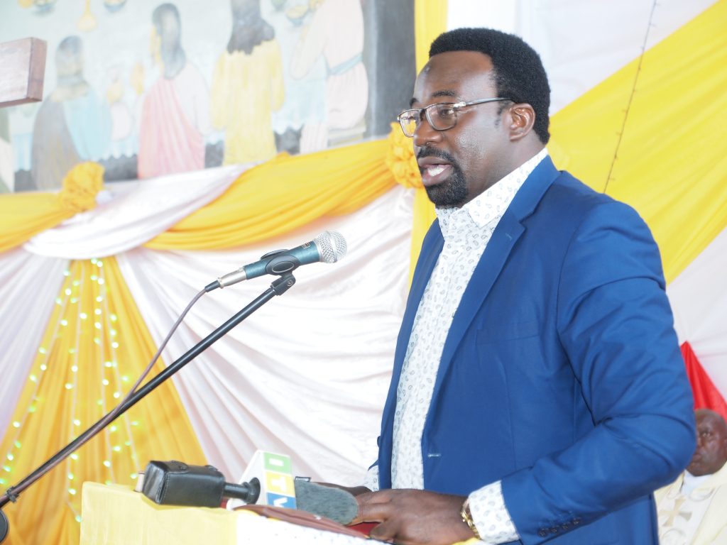 Mkuu wa wilaya ya Tunduru mkoani Ruvuma Julius Mtatiro akitoa salam za Serikali kwenye sherehe ya Jubilei ya kutimiza miaka 25 na 40 kwa mapadri wanne wa kanisa Katoriki Jimbo la Tunduru-Masasi.