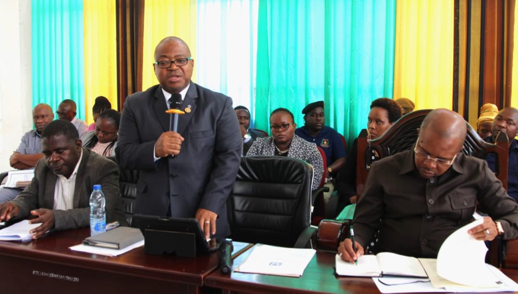 Katibu Tawala, Mkoa wa Pwani, Bw. Rashid Mchata akiwasilisha taarifa ya utekelezaji ya Mkoa wa Pwani kwa Naibu Waziri, Ofisi ya Rais, Menejimenti ya Utumishi wa Umma na Utawala Bora, Mhe. Ridhiwani Kikwete wakati wa ziara ya kikazi ya Naibu Waziri huyo iliyolenga kuhimiza uwajibikaji na kutatua changamoto zinazowakabili watumishi wa mkoa huo.