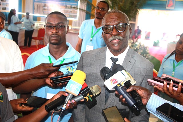 Mtendaji Mkuu wa TBA Arch. Daud Kondoro akizungumza na vyombo vya habari wakati alipotembelea katika banda la TBA kwenye maonesho ya 47 ya Niashara ya Kimataifa yanayofanyika kwenye viwanja vya Sabasaba Barabara ya Kilwa jijini, kushoto ni Fredrick Kalinga Kaimu Meneja wa Mawasiiano na Masoko.