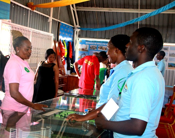 Mtendaji Mkuu wa TBA Arch. Daud Kondoro akipata maelezo kutoka kwa Fredrick Kalinga Kaimu Meneja wa Mawasiiano na Masoko wakati alipotembelea katika banda la TBA kwenye maonesho ya 47 ya Niashara ya Kimataifa yanayofanyika kwenye viwanja vya Sabasaba Barabara ya Kilwa jijini Dar es Salaam.