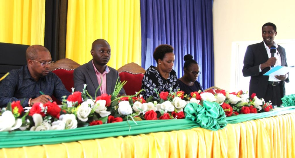 Kaimu Mkurugenzi wa Halmashauri ya Wilaya ya Kisarawe, Bw. Baptista Kihanza akiwasilisha taarifa ya utekelezaji ya halmashauri hiyo kwa Naibu Waziri, Ofisi ya Rais, Menejimenti ya Utumishi wa Umma na Utawala Bora, Mhe. Ridhiwani Kikwete wakati wa ziara ya kikazi ya Naibu Waziri huyo iliyolenga kuhimiza uwajibikaji na kutatua changamoto zinazowakabili watumishi.