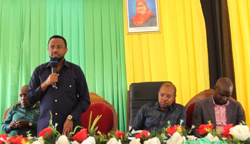 Mwakilishi wa Mkuu wa Wilaya ya Kisarawe ambaye pia ni Mkuu wa Wilaya ya Kibaha, Mhe. Nickson Simon akitoa neno la utangulizi kabla ya kumkaribisha Naibu Waziri, Ofisi ya Rais, Menejimenti ya Utumishi wa Umma na Utawala Bora, Mhe. Ridhiwani Kikwete kuzungumza na watumishi wa Halmashauri ya Wilaya ya Kisarawe wakati wa ziara ya kikazi ya Naibu Waziri huyo iliyolenga kuhimiza uwajibikaji na kutatua changamoto zinazowakabili.