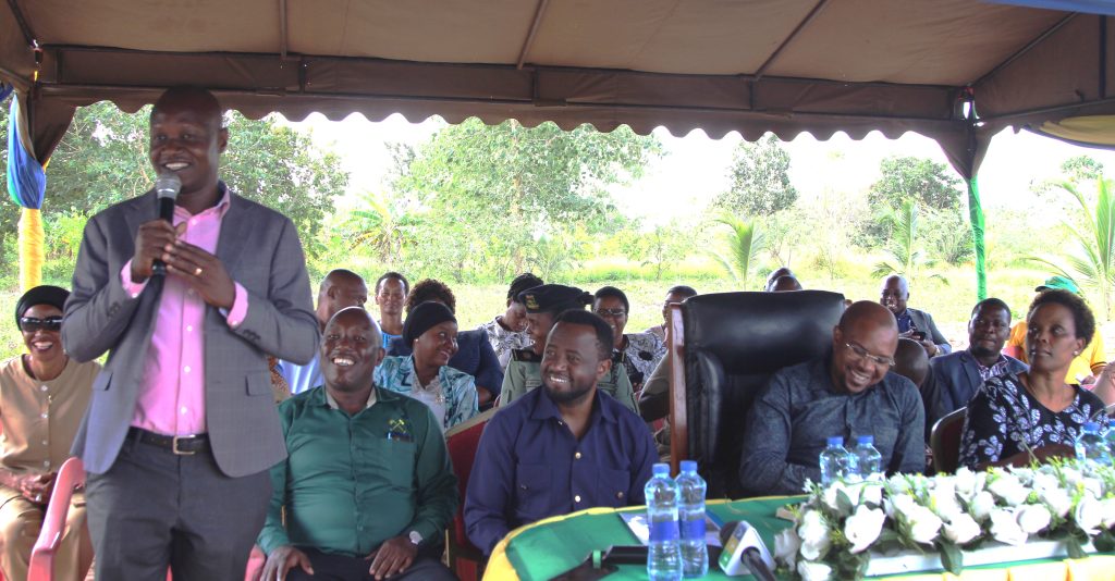 Mwenyekiti wa Halmashauri ya Wilaya ya Kisarawe, Bw. Zuberi Kizwezwe akitoa utambulisho wa viongozi wa Kata ya Masaki, Kijiji cha Kisanga kwa Naibu Waziri, Ofisi ya Rais, Menejimenti ya Utumishi wa Umma na Utawala Bora, Mhe. Ridhiwani Kikwete kabla ya Naibu Waziri huyo kuzungumza nao wakati wa ziara yake ya kikazi katika Halmashauri ya Wilaya ya Kisarawe iliyolenga kukagua utekelezaji wa miradi ya TASAF.