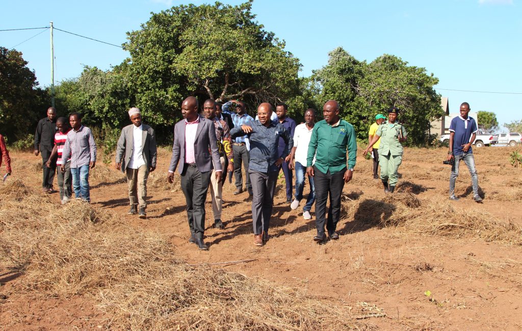 Naibu Waziri, Ofisi ya Rais, Menejimenti ya Utumishi wa Umma na Utawala Bora, Mhe. Ridhiwani Kikwete akitazama shamba la kilimo cha mikorosho na miembe ambalo ni mradi wa walengwa wa TASAF katika Kijiji cha Kisanga wakati wa ziara ya kikazi ya Naibu Waziri huyo iliyolenga kukagua utekelezaji wa miradi ya TASAF.