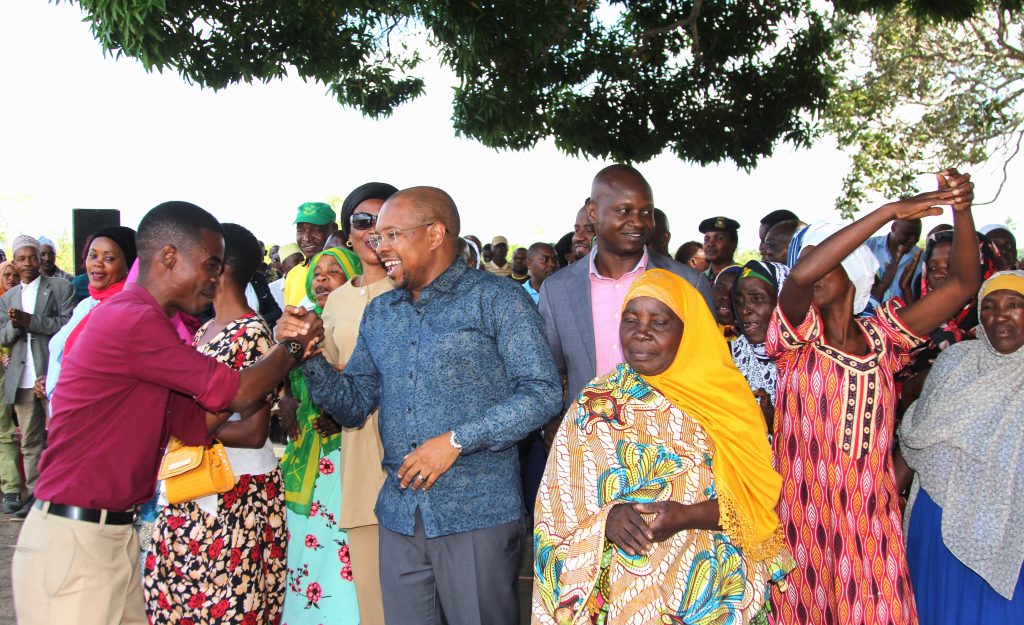 Naibu Waziri, Ofisi ya Rais, Menejimenti ya Utumishi wa Umma na Utawala Bora, Mhe. Ridhiwani Kikwete akisalimiana na wananchi wa Kata ya Masaki, Kijiji cha Kisanga mara baada ya kuwasili katika eneo hilo kwa lengo la kuzungumza na wananchi na walengwa wa TASAF wakati wa ziara yake ya kikazi iliyolenga kukagua utekelezaji wa miradi ya TASAF.