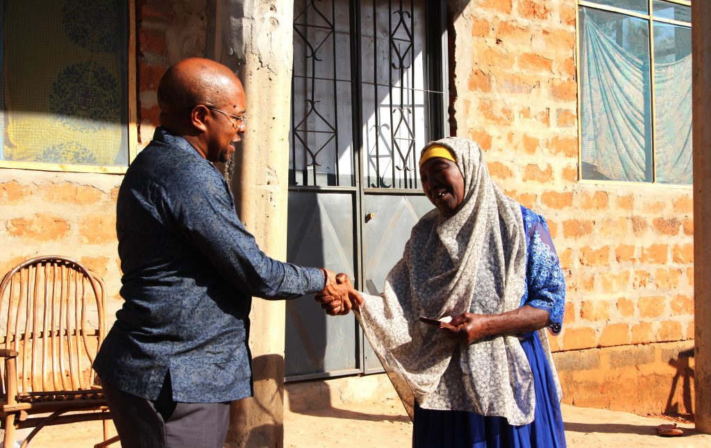 Naibu Waziri, Ofisi ya Rais, Menejimenti ya Utumishi wa Umma na Utawala Bora, Mhe. Ridhiwani Kikwete akimkabidhi fedha mlengwa wa TASAF, Bi. Zubeda Omari ili aweze kukamilisha ujenzi wa nyumba yake aliyoijenga kupitia ruzuku ya TASAF.