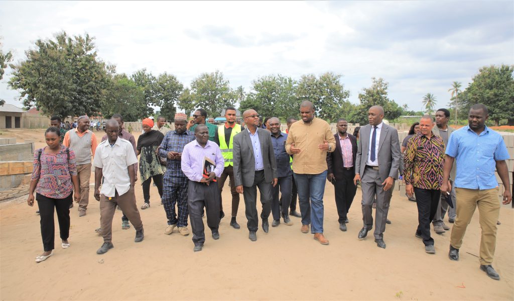 Naibu Waziri, Ofisi ya Rais-TAMISEMI Mhe. Deogratius Ndejembi akielekea kukagua miundombinu ya elimu katika shule ya Msingi Mkodongwa inayojengwa kupitia mradi wa BOOST katika Halmashauri ya Manispaa ya Temeke.