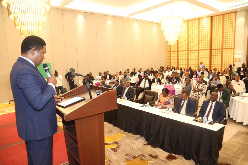 Waziri wa Nchi Ofisi ya Makamu wa Rais (Muungano na Mazingira) Mhe. Dkt. Selemani Jafo akifungua Majadiliano ya Sekta ya Umma na Sekta Binafsi kuhusu Biashara ya Kaboni kilichofanyika jijini Dar es Salaam kupitia Taasisi ya Sekta Binafsi Tanzania (TPSF) jijini Dar es Salaam