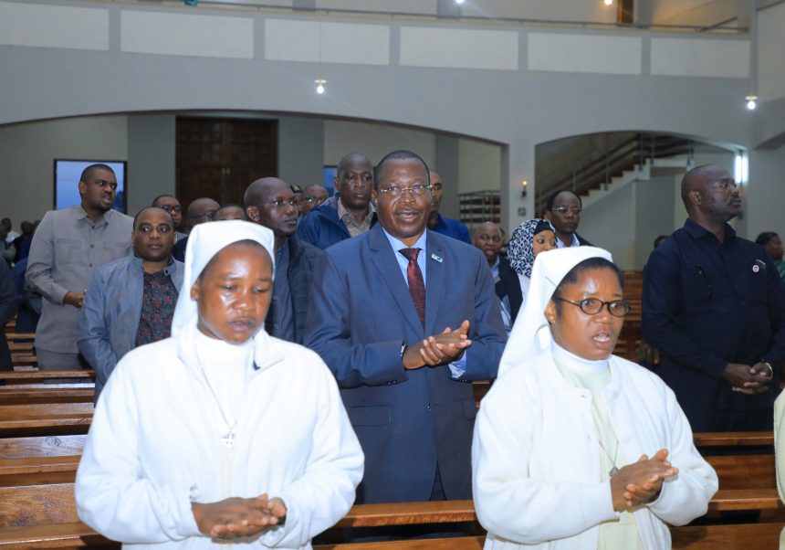 Makamu wa Rais wa Jamhuri ya Muungano wa Tanzania Mhe. Dkt. Philip Mpango akishiriki Ibada ya Jumapili katika Kanisa Katoliki la Mtakatifu Kiliani Jimbo Kuu Katoliki Mbinga leo tarehe 23 Julai 2023.