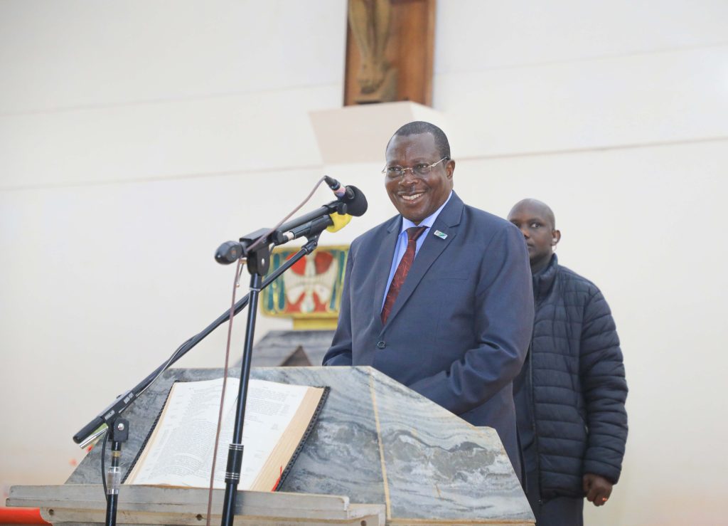 Makamu wa Rais wa Jamhuri ya Muungano wa Tanzania Mhe. Dkt. Philip Mpango Akizungumza na waumini mara baada ya kushiriki Ibada ya Jumapili katika Kanisa Katoliki la Mtakatifu Kiliani Jimbo Kuu Katoliki Mbinga leo tarehe 23 Julai 2023.