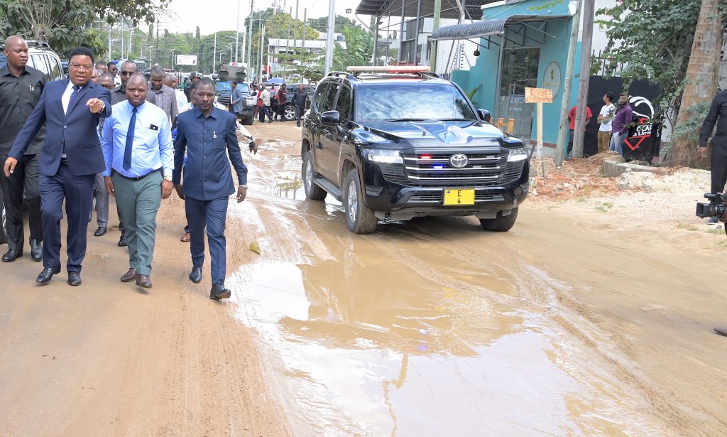 Waziri Mkuu, Kassim Majaliwa akikagua barabara ya Maliki inayounganisha Barabara ya Umoja wa mataifa na Hospitali ya Taifa Muhimbili jijini Dar es salaam, Julai 24, 2023. Kushoto kwake ni Mkuu wa Mkoa wa Dar es salaam, Albert Chalamila. Na kushoto ni Meneja wa Wakala wa Barabara Vijijini Mkoa wa Dar es salaam, Godfrey Mkinga.