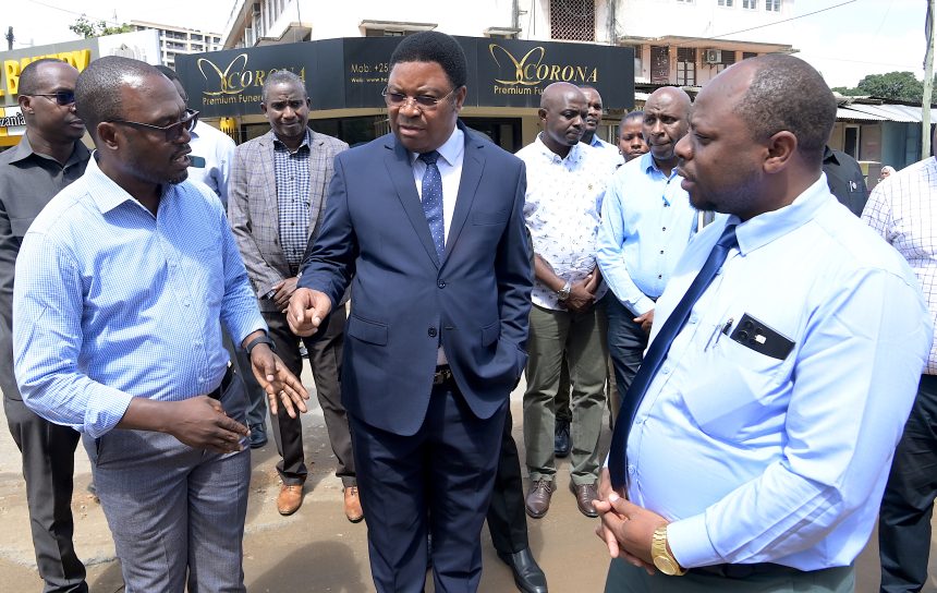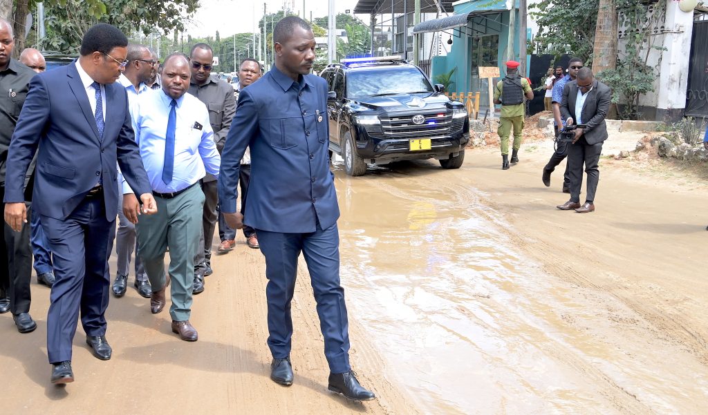Waziri Mkuu, Kassim Majaliwa akikagua barabara ya Maliki inayounganisha Barabara ya Umoja wa Mataifa na Hospitali ya Taifa Muhimbili jijini Dar es salaam, Julai 24, 2023. Kushoto kwake ni Mkuu wa Mkoa wa Dar es salaam, Albert Chalamila. (Picha na Ofisi ya Waziri Mkuu)