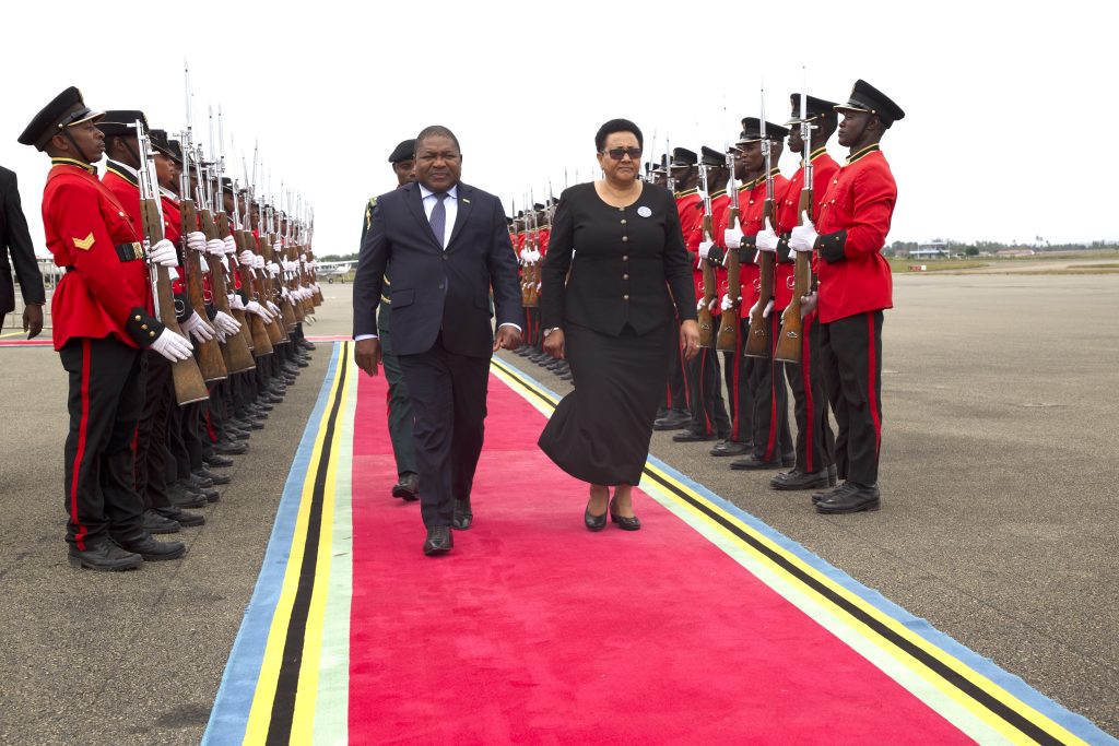 Katika Uwanja wa Ndege wa Kimataifa wa Julius Nyerere Dar es Salaam , Mhe. Rais Nyusi amesindikizwa na Waziri wa Mambo ya Nje na Ushirikiano wa Afrika Mashariki, Mhe. Dkt. Stergomena Tax (Mb.), Mkuu wa Mkoa wa Dar es Salaam, Mhe. Albert Chalamila na Balozi wa Tanzania nchini Msumbiji, mhe. Faustine Kasika.