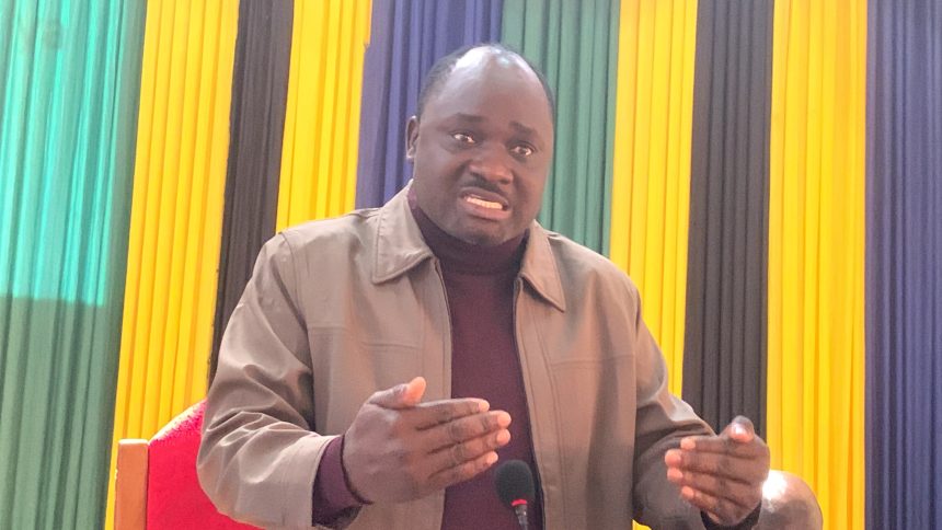 Mathias Matia Mwezeshaji mada ya Mfuko wa kusaidia maendeleo ya elimu Duniani (GPE) kwa wadau wa maendeleo ya elimu Mkoa wa Ruvuma.