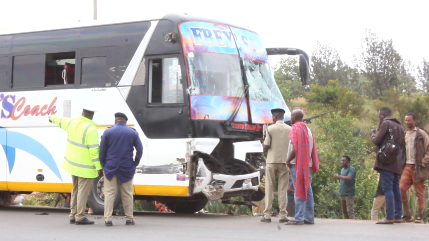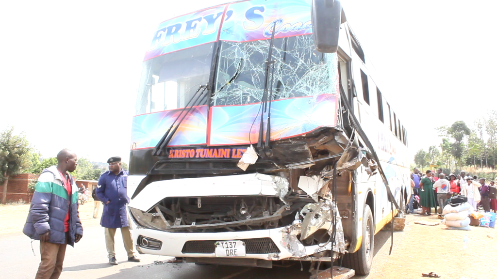 Zaidi ya watu 50 wamenusurika kifo huku watatu wakijeruhiwa baada ya gari kampuni ya FREY’S COACH yenye namba T 137 DRE waliokua wamepanda kuyagonga magari mawili yaliyokuwa waliyokuwa mbele yake.