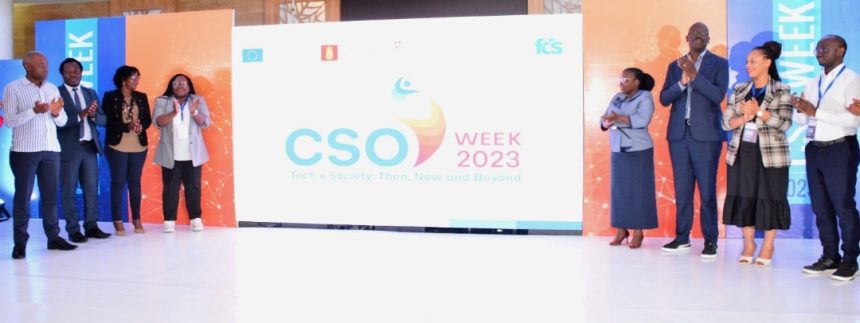 Mkurugenzi Mtendaji wa Foundation For Civil Society (FCS) Francis Kiwanga, (wa pili kushoto), akiwa na Mbunge wa Kigamboni Dkt. Faustini Ndugulile pamoja na wadau wengine wakipiga makofi mara baada ya kufanyika kwa uzinduzi rasmi wa Wiki ya Azaki iliyozinduliwa leo Agosti 1,2023 Jijini Dar es Salaam.