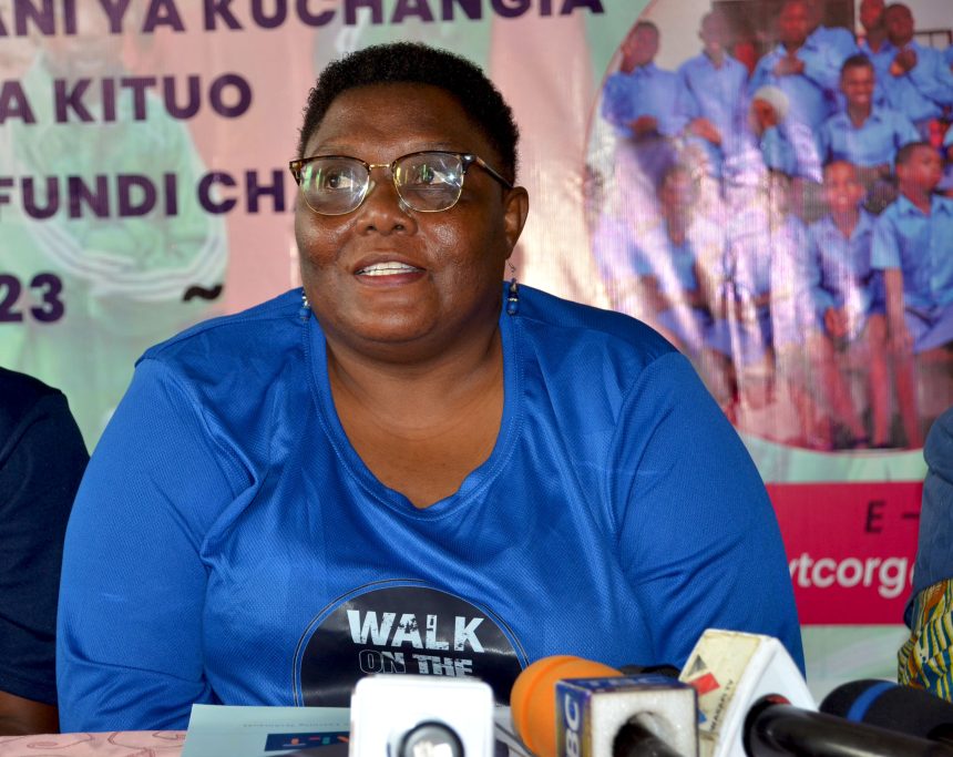 Mazizi mwenye mtoto wa matatizo ya ufahamu Bibie Abdullah akizungumza na waandishi wa habari leo tarehe 2/8/2023 Jijini Dar es Salaam umuhimu matembezi hisani yanayotarajia kufanyika tarehe 24/9/2023 katika viwanja vya Farasi (The Green Osterbay) kwa ajili ujenzi wa Mabweni ya watoto.