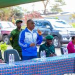Waziri Mkuu wa Jamhuri ya Muungano wa Tanzania Mhe. Kassim Majaliwa akisalimiana na viongozi wa Serikali mara baada ya kuwasili Mambamba Tandahimba kukagua miundombinu ya elimu inayojengwa kupitia mradi wa BOOST katika Shule ya Msingi Mambamba ‘B’.