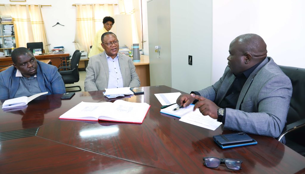 Naibu Waziri wa Ujenzi, Eng. Godfrey Kasekenya, akisisitiza jambo kwa Meneja wa Wakala wa Ufundi na Umeme (TEMESA), Mkoa wa Dodoma, Eng. Grayson Maleko (kulia), alipokagua maendeleo ya karakana ya Wakala huo Jijini Dodoma.