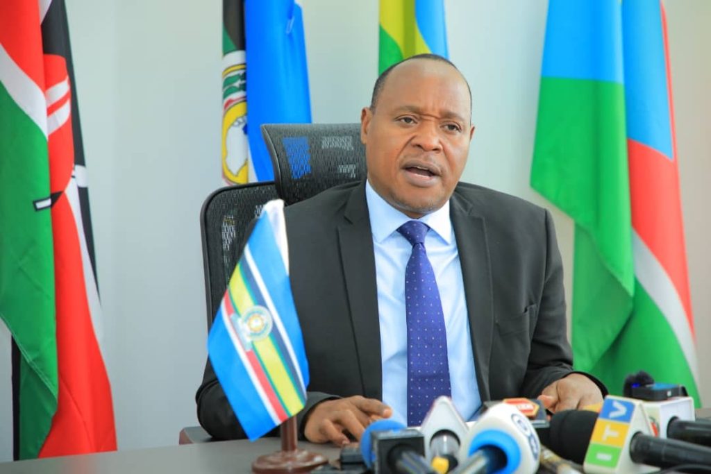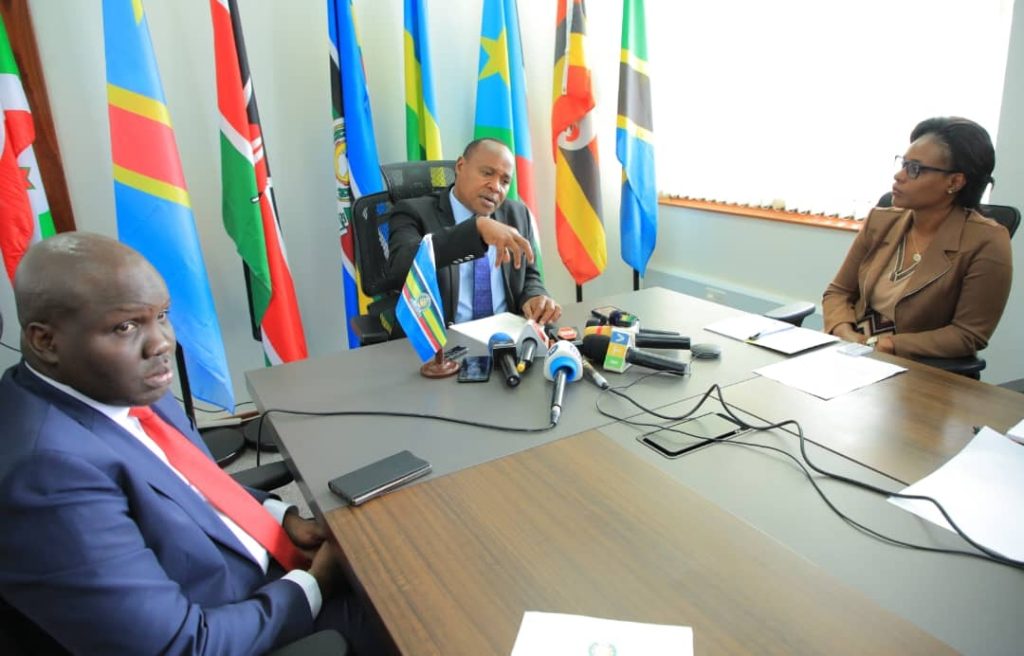 Katibu Mkuu wa Jumuiya ya Afrika Mashariki EAC, Dkt.Peter Mathuki akizungumza na waandishi wa habari.