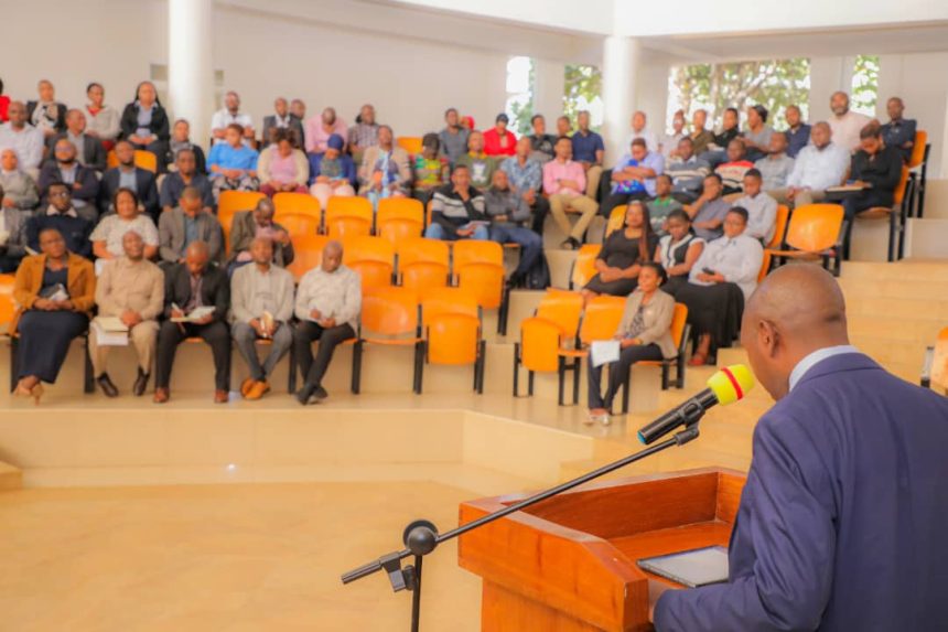 Makamu Mkuu wa Taasisi ya Afrika ya Nelson Mandela ya Sayansi na Teknolojia Professa Maulilio Kipanyula akiongea na watumishi wa taasisi hiyo mara baada ya kuwasili