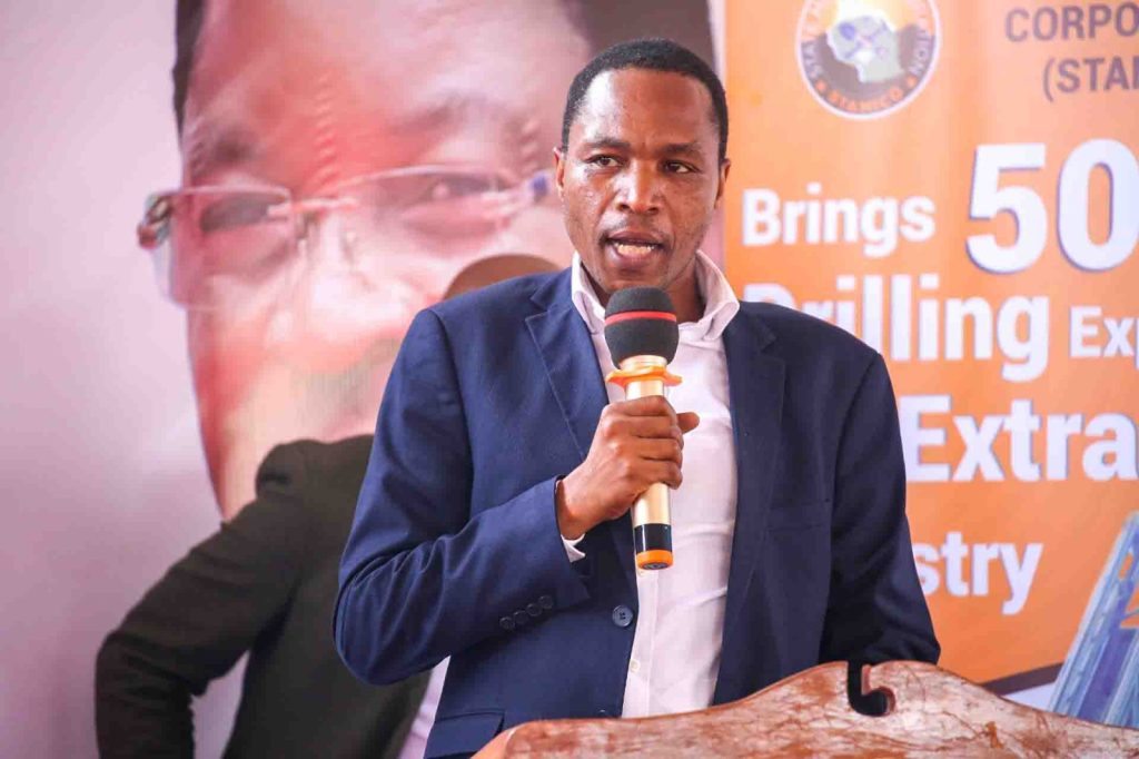 Naye, Meneja wa Huduma ya Jiolojia kutoka Taasisi ya Jiolojia na Utafiti wa Madini Tanzania (GST) Solomon Maswi akitoa wasilisho katika Maonesho ya Kwanza ya Madini na Fursa za Uwekezaji Wilayani Ruangwa Mkoa wa Lindi. Maswi amesema GST imechora ramani ya Jiolojia ya Mkoa wa Lindi na nchi nzima kuonesha fursa mbalimbali zilizopo kuanzia ngazi ya mkoa na nchi nzima ambayo inapatikana kwa lugha ya Kiswahili.