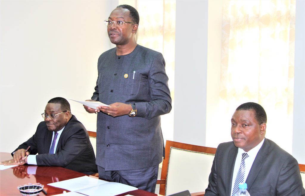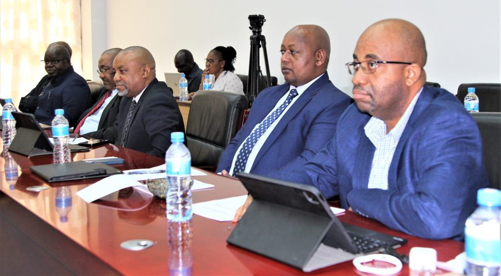 Katibu Mkuu Ofisi ya Rais Ikulu, Bw. Mululi Mahendeka akitoa neno la utangulizi kabla ya kumkaribisha Waziri wa Nchi, Ofisi ya Rais, Menejimenti ya Utumishi wa Umma na Utawala Bora, Mhe. George Simbachawene kuzindua Bodi ya Ushauri ya Wakala wa Ndege za Serikali jijini Dar es Salaam.