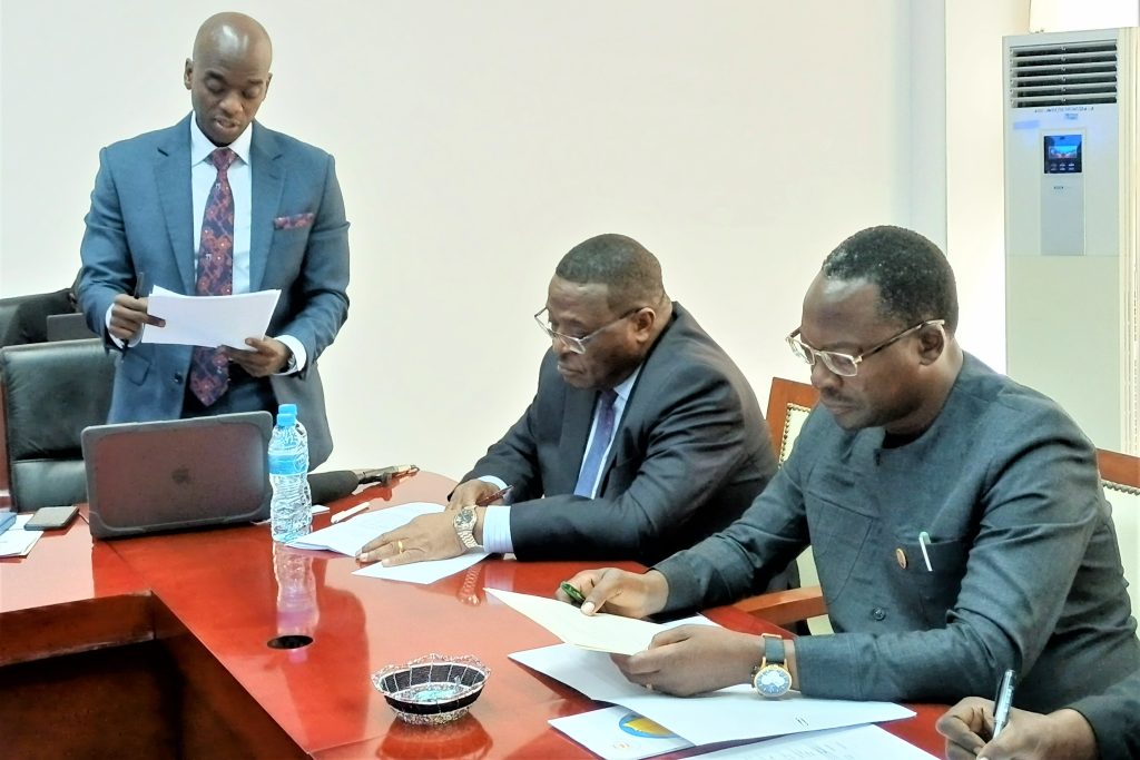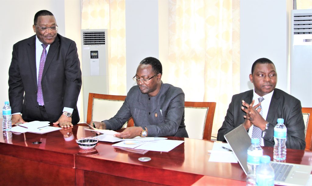 Kaimu Afisa Mtendaji Mkuu wa Wakala wa Ndege za Serikali (TGFA) Capt. Budodi Budodi akiwasilisha taarifa ya utekelezaji wa majukumu ya taasisi yake kwa Waziri wa Nchi, Ofisi ya Rais, Menejimenti ya Utumishi wa Umma na Utawala Bora, Mhe. George Simbachawene kabla ya Waziri huyo kuzindua Bodi ya Ushauri ya Wakala wa Ndege za Serikali jijini Dar es Salaam.