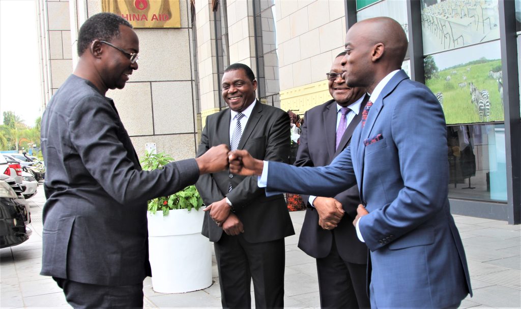 Waziri wa Nchi, Ofisi ya Rais, Menejimenti ya Utumishi wa Umma na Utawala Bora, Mhe. George Simbachawene akiagana na Kaimu Afisa Mtendaji Mkuu wa Wakala wa Ndege za Serikali (TGFA) Capt. Budodi Budodi mara baada ya Waziri huyo kuwasili katika Kituo cha Mikutano cha Kimataifa cha Julius Nyerere (JNICC) jijini Dar es Salaam kuzindua Bodi ya Ushauri ya Wakala hiyo jijini Dar es Salaam. Wanaoshuhudia ni Katibu Mkuu Ofisi ya Rais Ikulu, Bw. Mululi Mahendeka na Mwenyekiti wa Bodi ya Ushauri ya Wakala wa Ndege za Serikali, Prof. Mhandisi, Idrissa Mshoro.