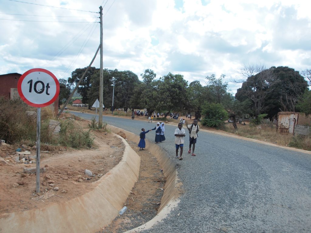 Uwekezaji wa alama za barabarani katika barabara ya lami ya Misufini-Extended wilayani Tunduru ikiendelea kwa ajili ya kudhibiti uzito wa magari na matumizi yasiyozingatia sheria ili kuiwezesha barabara hiyo iweze kudumu kwa muda mrefu.
