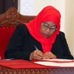 Waziri wa Nchi Ofisi ya Makamu wa Rais Muungano na Mazingira Dkt. Selemani Jafo akiweka Saini katika kitabu cha maombolezo ya kifo cha Dada wa Makamu wa Rais wa Jamhuri ya Muungano wa Tanzania Mhe. Dkt. Philip Mpango Marehemu Bi. Maria Isdor Nzabhayanga mara baada ya kuwasili msibani katika Kijiji cha Kipalapala mkoani Tabora