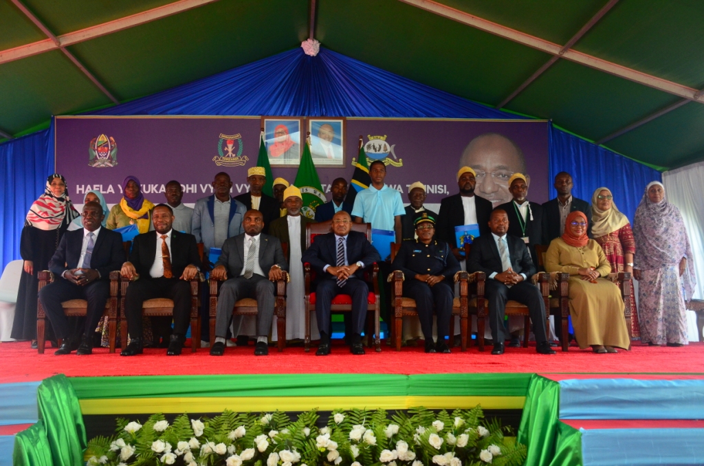 Rais wa Zanzibar na Mwenyekiti wa Baraza la Mapinduzi Dk Hussein Ali akiwa katika Picha ya Pamoja na Viongozi na Waliokabidhiwa Vyeti vya Uraia katika Hafla ya kukabidhi vyeti kwa Raia wa Tanzania kwa Tajnisi Ikulu jijini Zanzibar.