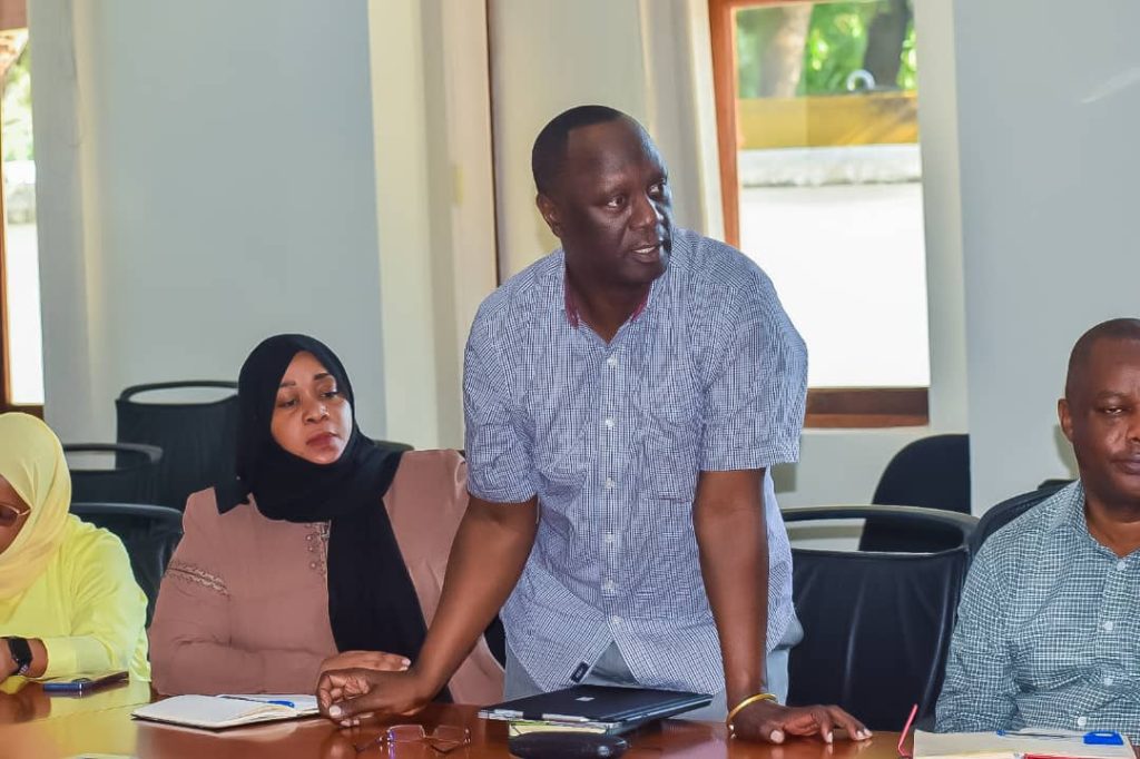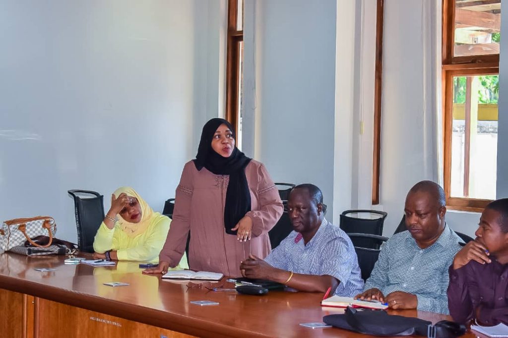 Afisa Kiongozi wa Mradi wa Programu ya Kuendeleza sekta ya Kilimo na Uvuvu (AFDP) kutoka Wizara ya Uchumi wa Buluu na Uvuvi Zanzibar Bi. Amina Ussi akichangia jambo wakati wa kikao hicho.