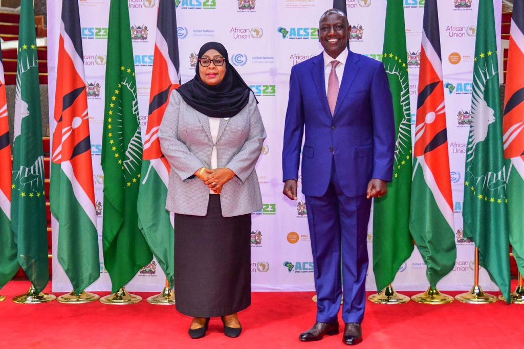 Rais wa Jamhuri ya Muungano wa Tanzania Mhe. Samia Suluhu Hassan akiwa na Wakuu wa Nchi na Serikali pamoja na Viongozi wa Taasisi mbalimbali za Kimataifa kwenye Mkutano wa Mabadiliko ya Tabianchi Barani Afrika (Africa Climate Summit 23) unaofanyika katika ukumbi wa Kituo cha Mikutano cha Kimataifa cha Kenyatta (KICC) Nairobi nchini Kenya tarehe 05 Septemba, 2023.