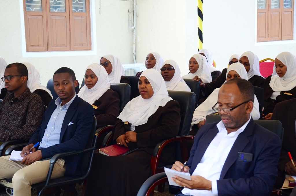 Baadhi ya Watendaji wa Kamisheni ya Utumishi wa Umma wakifuatilia uwasilishwaji wa taarifa ya utekelezaji wa Ilani ya Chama Cha Mapinduzi kwa kipindi cha mwaka 2020-2023 wakati wa Ziara ya Waziri wa Nchi, (OR) ,Katiba,Sheria,Utumisha na Utawala bora Haroun Ali Sleiman kuangalia utekelezajio huo katika Taasisi zilizo chini ya Wizara yake.
