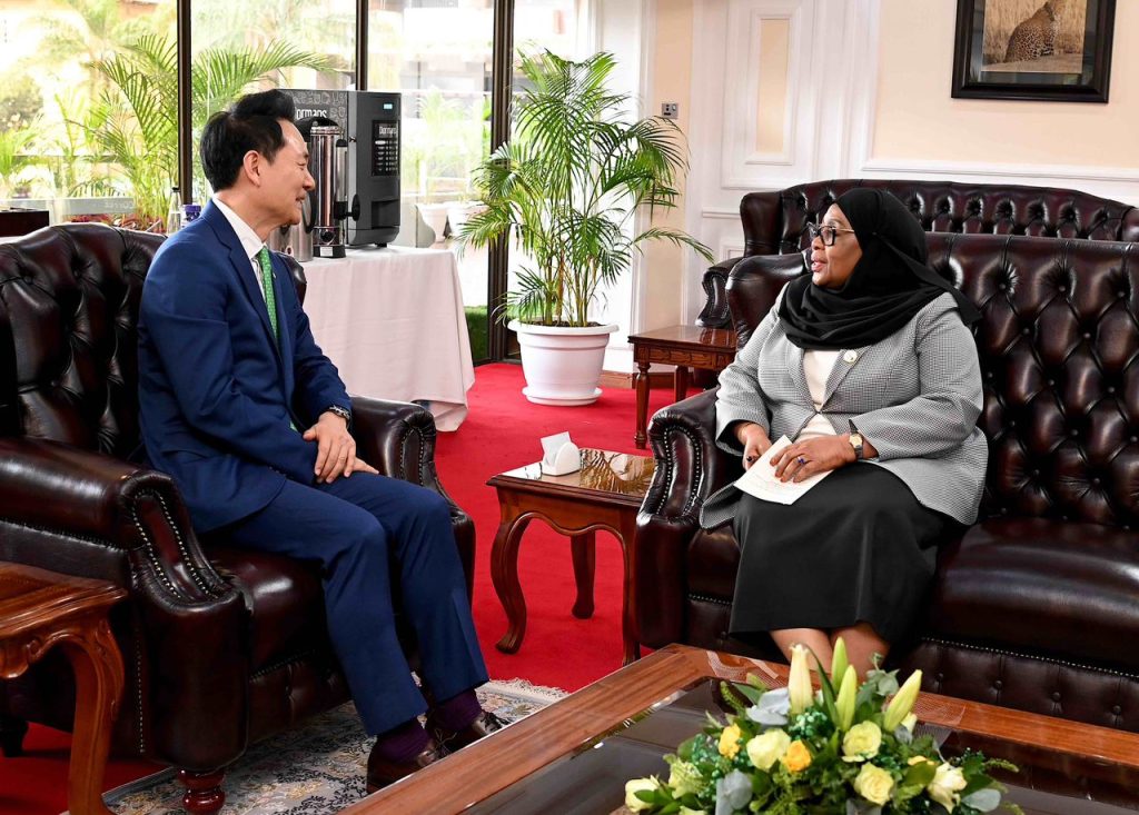 Rais wa Jamhuri ya Muungano wa Tanzania Mhe. Samia Suluhu Hassan, akiwa kwenye mazungumzo na Mjumbe Maalum wa Rais wa Jamhuri ya Korea Kusini Mhe. Jang Sung Min pamoja na ujumbe wake aliombatana nao kando ya Mkutano wa Mabadiliko ya Tabianchi Africa (Africa Climate Summit 23) unaofanyika katika Jiji la Nairobi Nchini Kenya.