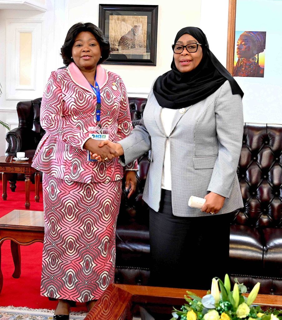 Rais wa Jamhuri ya Muungano wa Tanzania Mhe. Samia Suluhu Hassan, akiwa kwenye picha ya pamoja na Makamu wa Rais wa Angola Mhe. Esperanca Maria Eduardo da Costa mara baada ya mazungumzo kando ya Mkutano wa Mabadiliko ya Tabianchi Africa (Africa Climate Summit 23) unaofanyika katika Jiji la Nairobi Nchini Kenya.