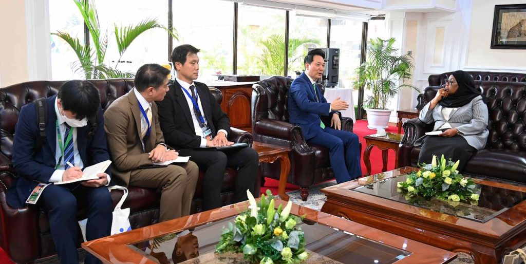 Rais wa Jamhuri ya Muungano wa Tanzania Mhe. Samia Suluhu Hassan, akiwa kwenye mazungumzo na Mjumbe Maalum wa Rais wa Jamhuri ya Korea Kusini Mhe. Jang Sung Min pamoja na ujumbe wake aliombatana nao kando ya Mkutano wa Mabadiliko ya Tabianchi Africa (Africa Climate Summit 23) unaofanyika katika Jiji la Nairobi Nchini Kenya.
