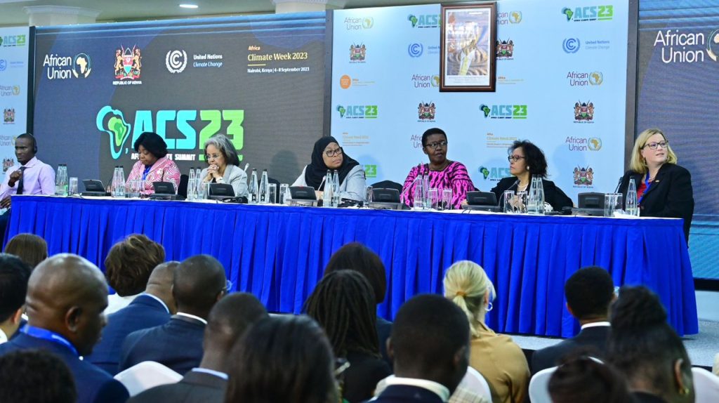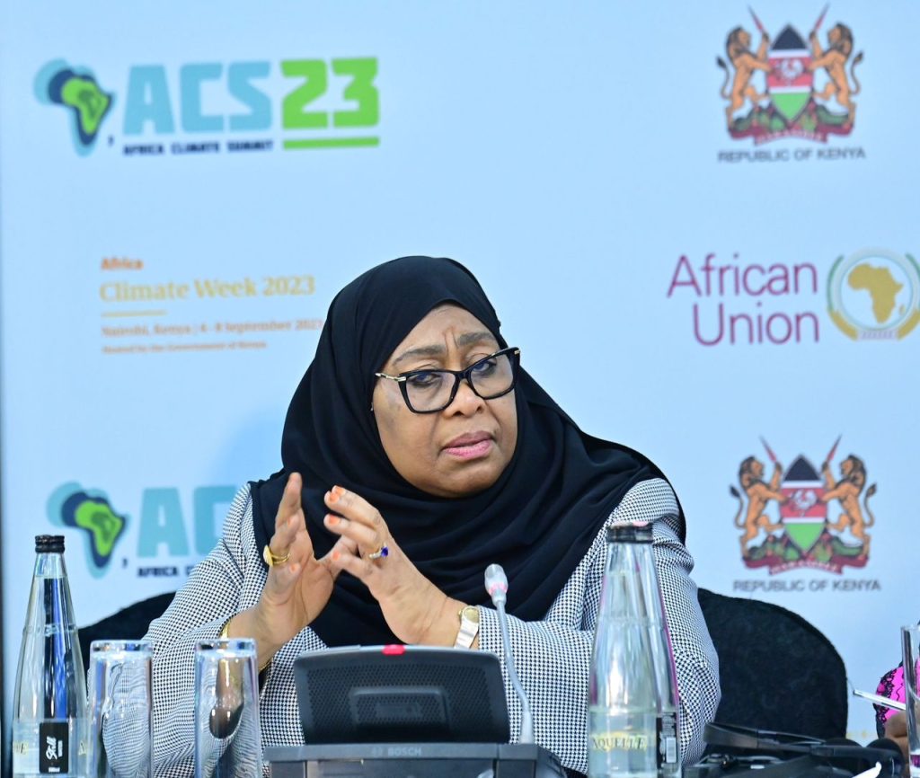 Rais wa Jamhuri ya Muungano wa Tanzania Mhe. Samia Suluhu Hassan akizungumza katika Mikutano mbalimbali kando ya mkutano Mkuu wa Mabadiliko ya Tabianchi Africa (Africa Climate Summit 23) unaofanyika katika Jiji la Nairobi Nchini Kenya.