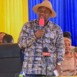 Mmoja wa walengwa wa Mpango wa Kunusuru Kaya Maskini Wilaya ya Tarime mkoani Mara akizungumza mbele ya Naibu Waziri Ofisi ya Rais, Menejimenti ya Utumishi wa Umma na Utawala Bora, Mhe. Ridhiwani Kikwete kuhusu changamoto wanazokabiliana nazo katika kupokea ruzuku wakati wa ziara yake ya kikazi ya kukagua utekelezaji wa miradi ya TASAF mkoani Mara.