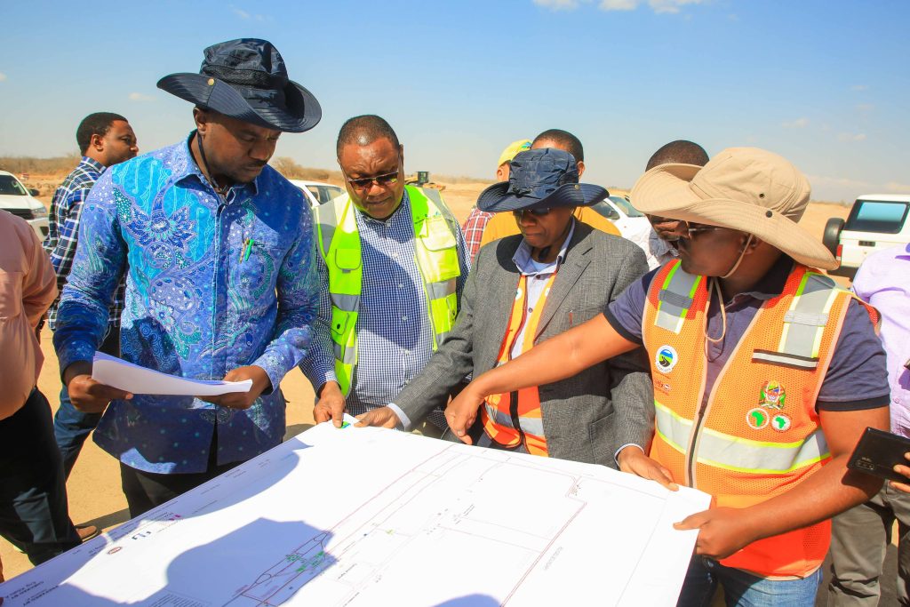 Waziri wa Ujenzi, Innocent Bashungwa, akitoa maelekezo kwa mkandarasi wa Kampuni ya Beijing Construction Engineering Group wakati alipokagua maendeleo ya ujenzi wa Kiwanja cha Ndege cha Kimataifa cha Msalato, Septemba 29, 2023 jijini Dodoma