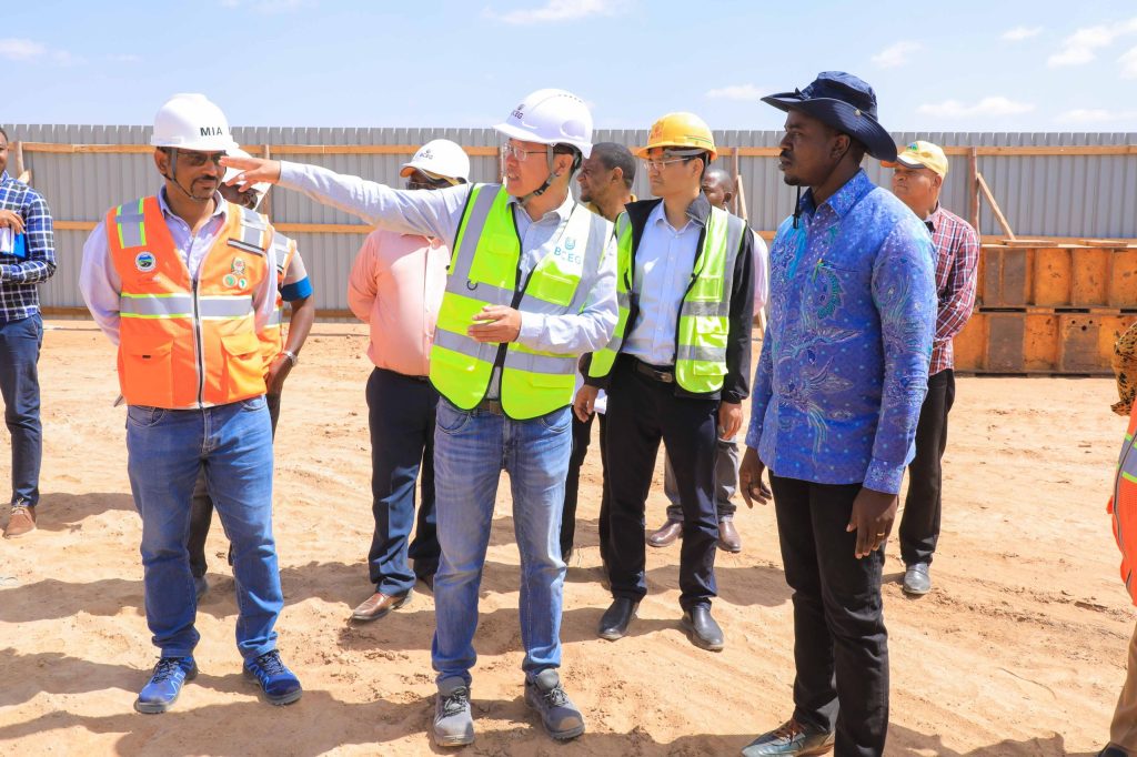 Mkandarasi wa Kampuni ya Beijing Construction Engineering Group akifafanua jambo kwa Waziri wa Ujenzi, Innocent Bashungwa, kuhusu hatua zilizofikiwa za utekelezaji wa ujenzi wa jengo la abiria katika Kiwanja cha Ndege cha Kimataifa cha Msalato, Septemba 29, 2023 jijini Dodoma.