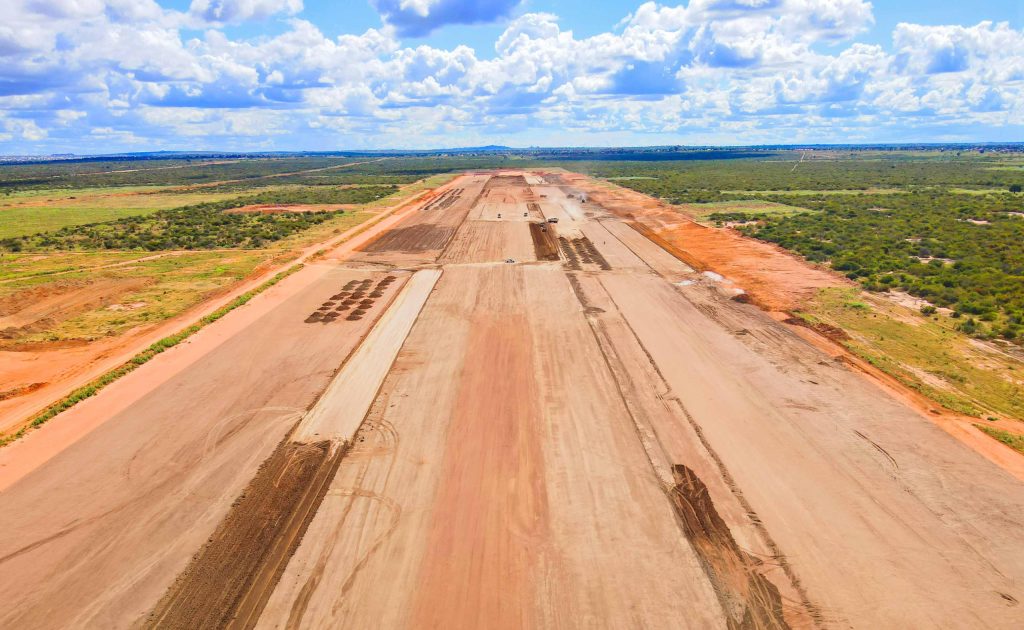 Muonekano wa hatua iliyofikiwa ya ujenzi wa barabara ya kuruka na kutua ndege katika Kiwanja cha Ndege cha Kimataifa cha Msalato, jijini Dodoma. Ujenzi wa barabara hiyo hadi sasa umefikia asilimia 3